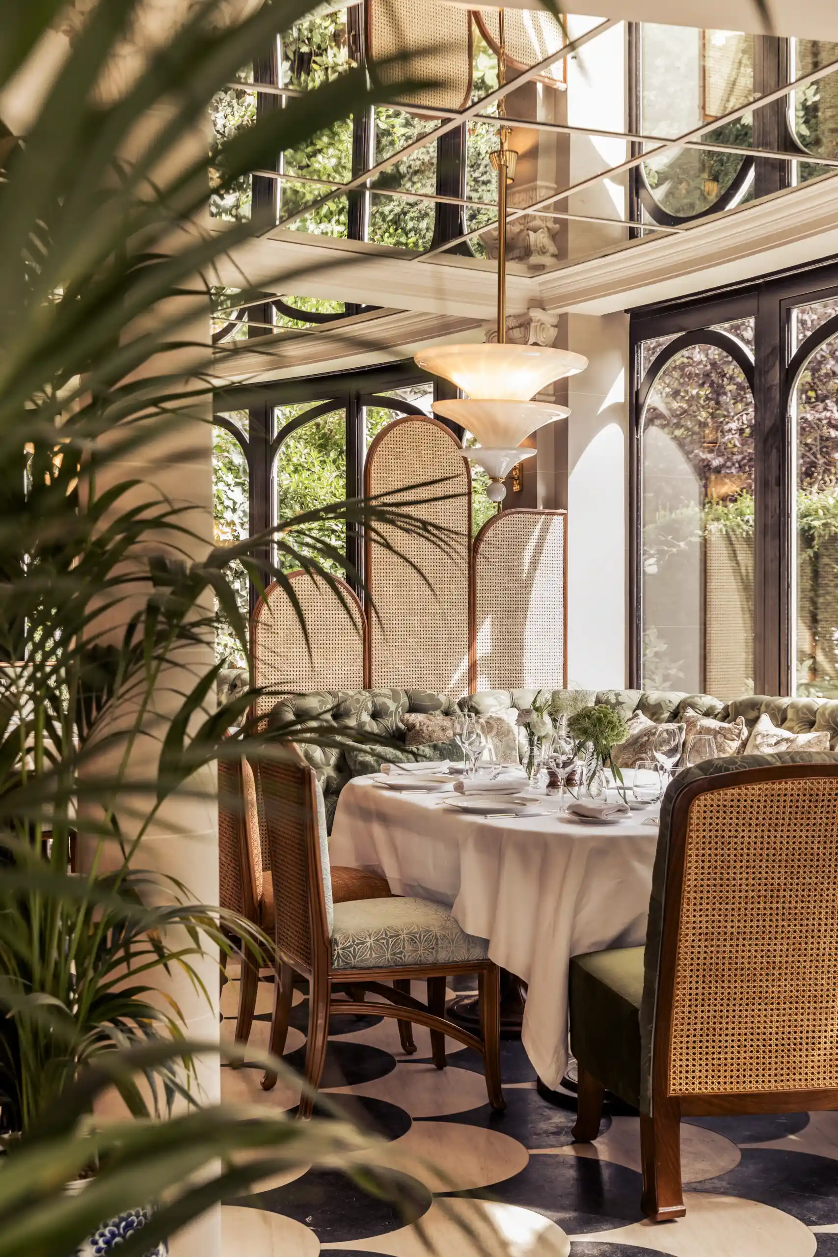 Cordélia de Castellane, directrice artistique de Paris Society, nous le rend à l’indicatif présent : hauteur sous plafond, murs aux couleurs pastel, fauteuils en osiers aux courbes harmonieuses et moquettes flamboyantes, la magie opère.