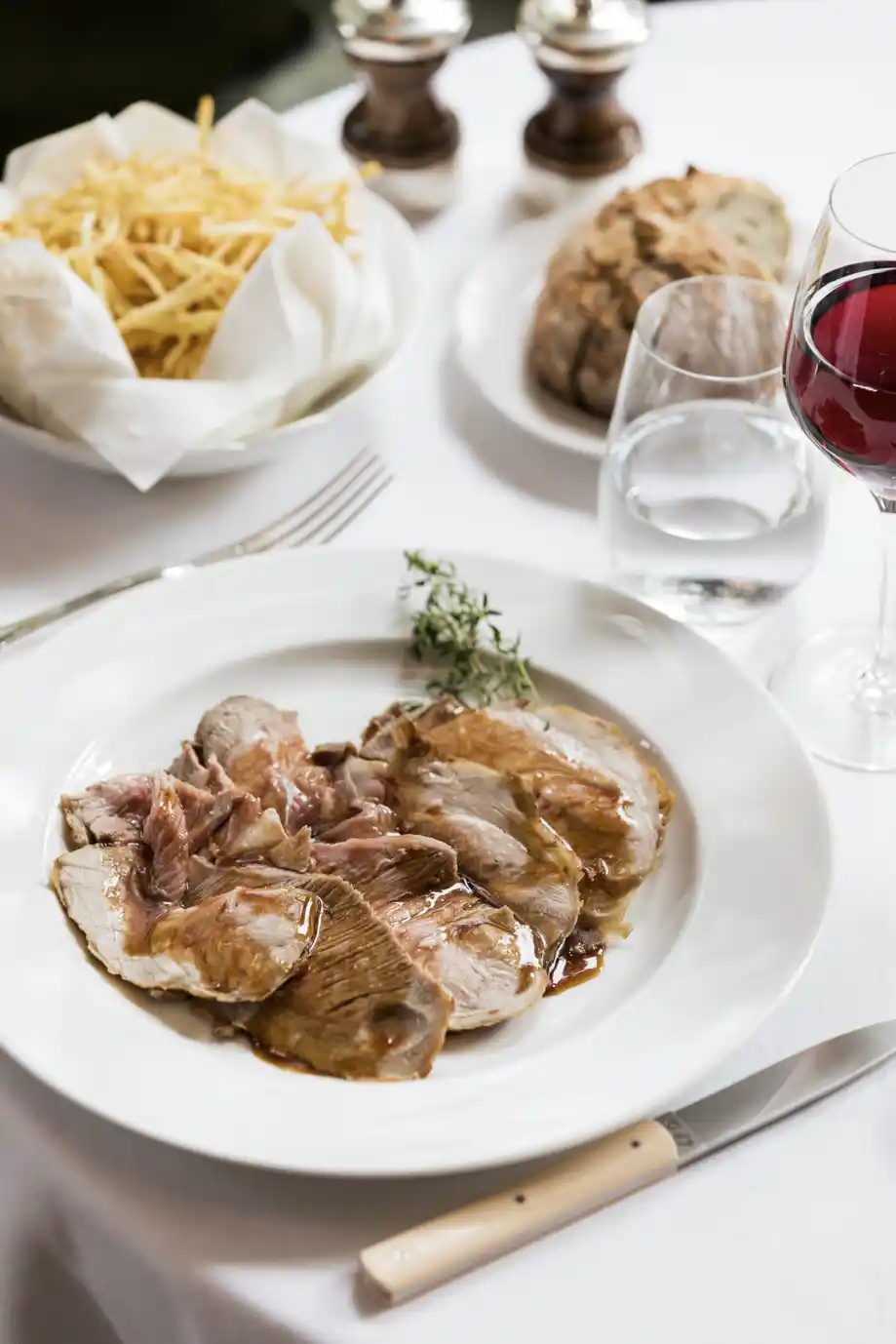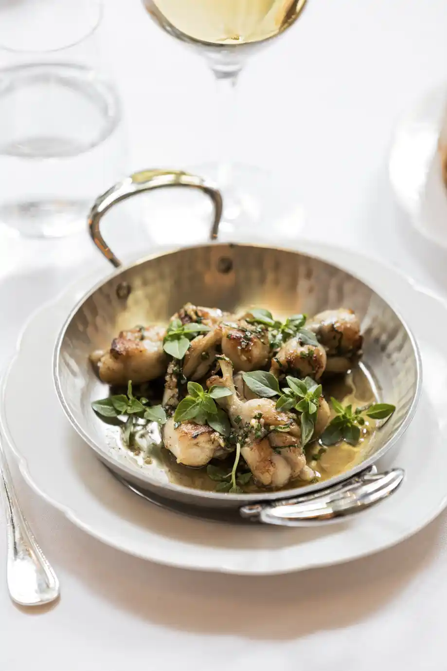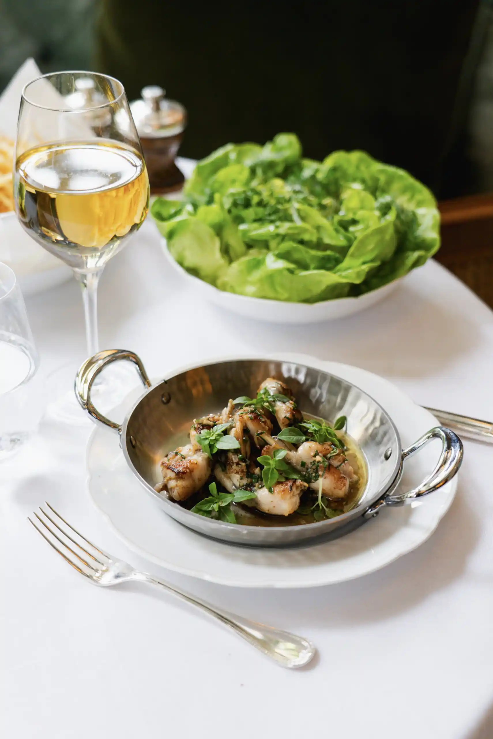 Mathieu Pacaud éclaircit les classiques, raffine la tradition : Crudités à l’aïoli soufflé, Saumon fumé en aspic de baies roses, Brioche mousseline au caviar Golden, Cabillaud confit sauce vierge, Gigot d’agneau de lait à la moelle et marjolaine, on en passe qu’on est sûrement pas prêt d’oublier dont le trio de classiques maisons revus nouvelle vague, incontournable Salade de homard bleu, Langoureuses langoustines à la feuille de basilic, Affriolante araignée de mer rafraîchie à la gelée de fenouil.