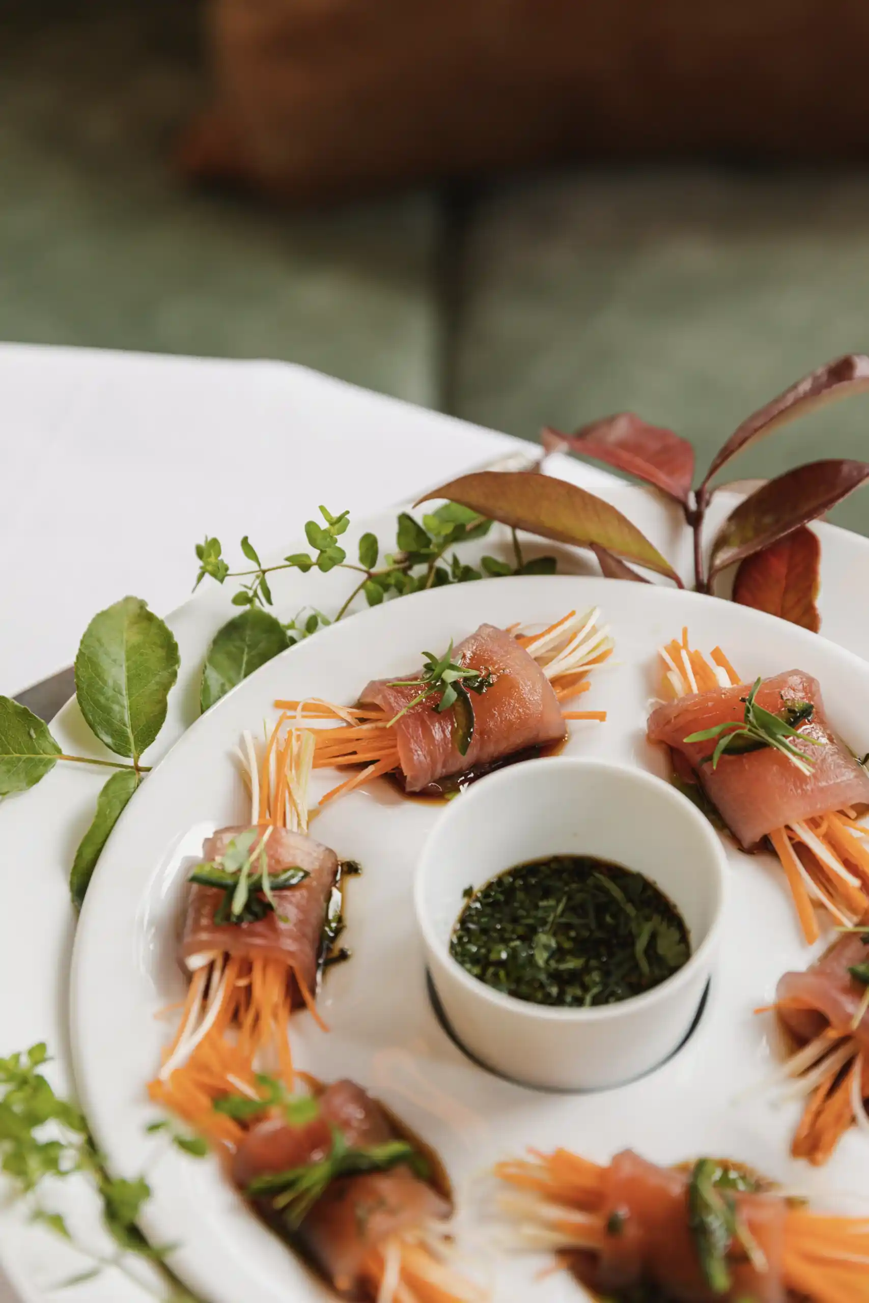 À chaque plat, une touche, un style, la rencontre parfaite entre le grand chef Mathieu Pacaud et la belle table.